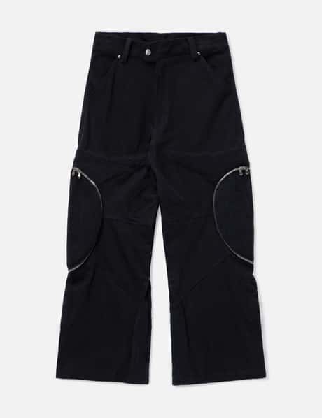 Padded Flared Black Denim Pants